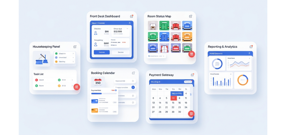 To understand how a hotel reservation system operates, it helps to look at its different components and how they function in real booking scenarios. A hotel reservation system is designed to simplify and automate the entire process from the first booking to the guest’s checkout.